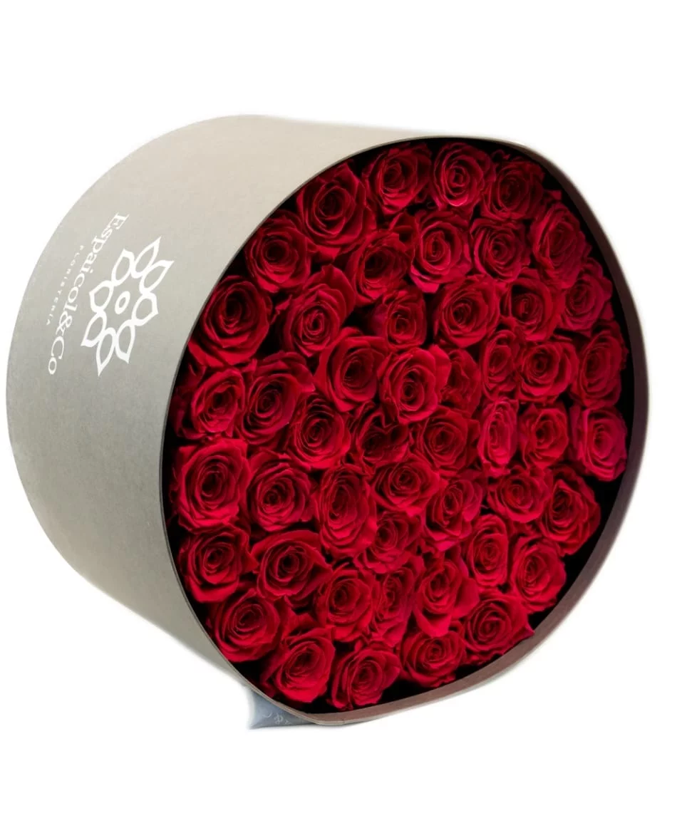 Esta composición de Rosas Liofilizadas va en nuestra hermosa caja premium con características propias Espaicol & Co.
