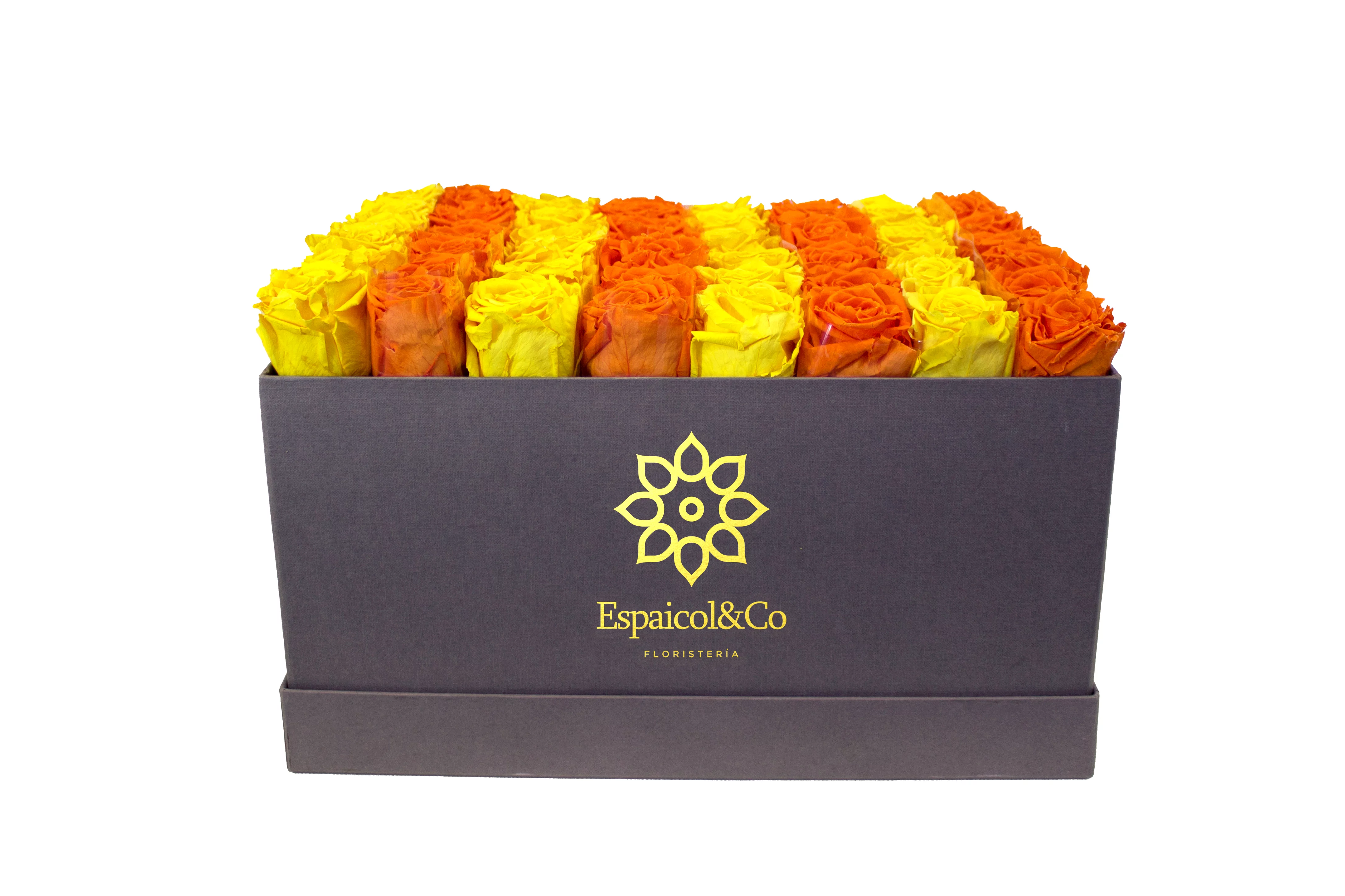 Este diseño lineal en dos tonos de rosas es un detalle llamativo y colorido, compuesto por rosas liofilizadas que protagonizan de manera lineal una creación muy original. Esta composición va en nuestra hermosa caja Luxury de color gris con características propias Espaicol & Co, un detalle como este puede lucirse en cualquier espacio de tu casa, habitación o lugar especial.